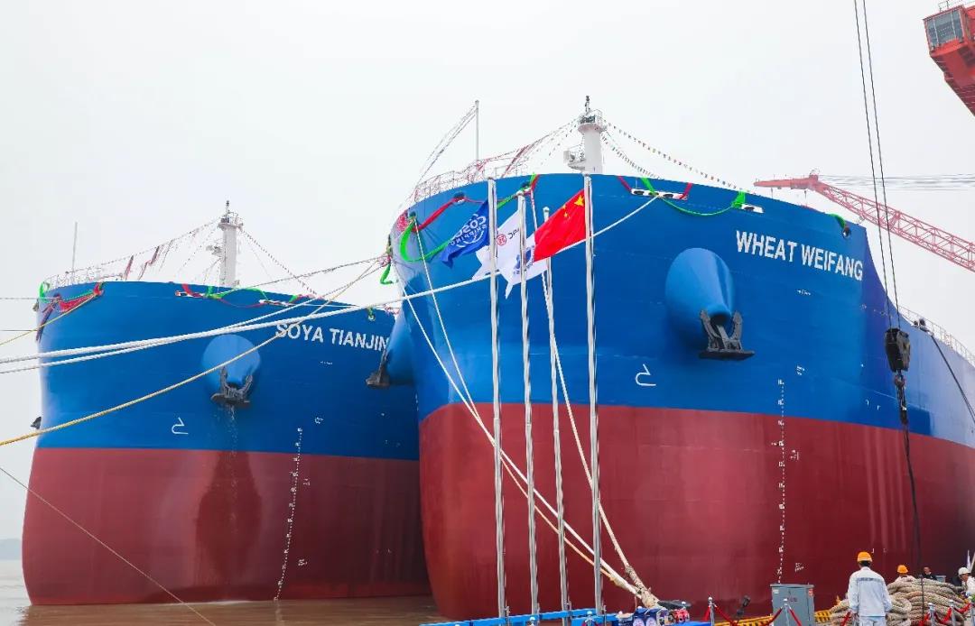 7月22日,公司与工银租赁合资为邦吉集团订造的船舶“SOYA TIANJIN”轮和“WHEAT WEIFANG”轮在扬州中远重工船厂交付。公司党委副书记、总经理高长峰,中远海运重工副总经理赵增山,江都区委书记张彤,工银租赁航运金融事业部副总经理赵阔等出席仪式并分别致辞。工银租赁山东管理中心总经理周艳,青岛市市北区财政局局长关爱红分别为两条船舶命名。