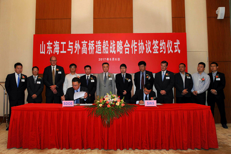 近日,公司参股的山东海洋工程装备有限公司(以下简称“山东海工”)与上海外高桥造船有限公司(以下简称“外高桥造船”)战略合作协议签约暨H1378自升式钻井平台命名仪式在上海外高桥船厂举行。中国船舶工业集团(以下简称“中船集团”)副总经理孙云飞,山东海洋集团有限公司(以下简称“山东海洋集团”)董事长包剑英、外高桥造船董事长王琦出席仪式并致辞,山东海洋集团副总经理赵显福宣读钻井平台命名词,副总经理、山东海工总裁于冰代表山东海工与外高桥造船签署战略合作协议。